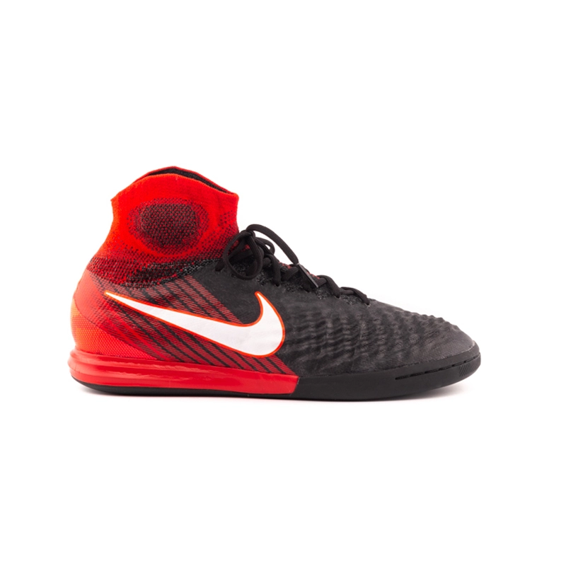 Зальні бутси з високим еластичним манжетом-шкарпеткою і рельєфним верхом. Спеціальна технологія All Conditions Control дозволяє ефективно вести м'яч за будь-яких умов. Кросівки призначені для гри на твердій поверхні, навіть якщо вона відполірована. Зчеплення забезпечується особливим малюнком протектора. Купити Nike MagistaX Proximo II DF IC варто гравцям професійного рівня.