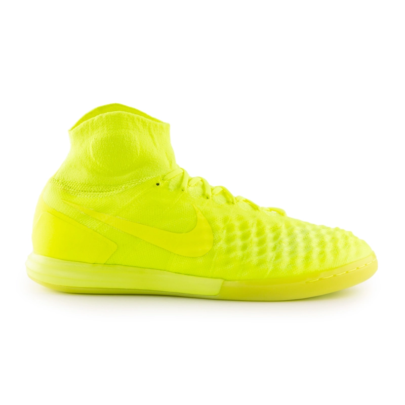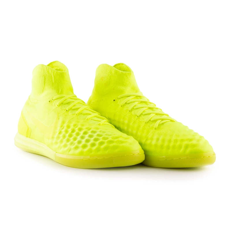Зальні бутси з високим еластичним манжетом-шкарпеткою і рельєфним верхом. Спеціальна технологія All Conditions Control дозволяє ефективно вести м'яч за будь-яких умов. Кросівки призначені для гри на твердій поверхні, навіть якщо вона відполірована. Зчеплення забезпечується особливим малюнком протектора. Купити Nike MagistaX Proximo II DF IC варто гравцям професійного рівня.