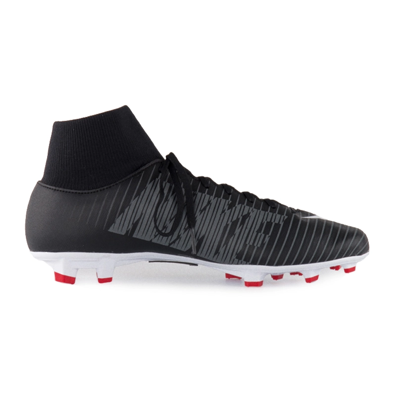 Купити Nike Mercurial Victory VI DF FG варто ще й через м'який еластичний манжет — він щільно охоплює ногу і не дозволяє їй прослизати, захищає суглоби від травм. Ще одна особливість — це симетрична шнурівка, що дозволяє легко регулювати щільність фіксації.