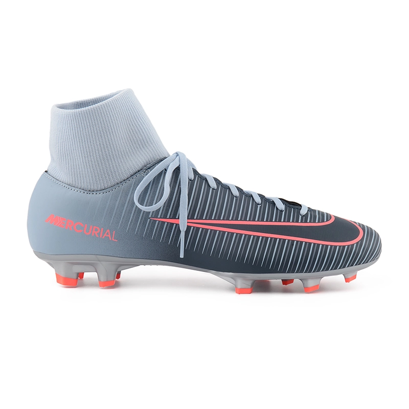 Купити Nike Mercurial Victory VI DF FG варто ще й через м'який еластичний манжет — він щільно охоплює ногу і не дозволяє їй прослизати, захищає суглоби від травм. Ще одна особливість — це симетрична шнурівка, що дозволяє легко регулювати щільність фіксації.